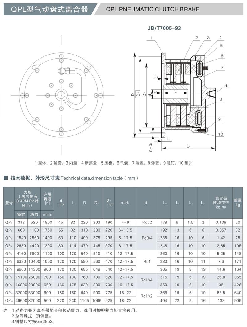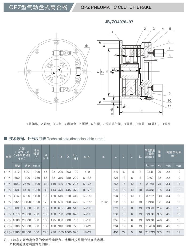 QPL型氣動盤式離合器具有制動和傳遞扭矩大、制動離合迅速、結(jié)構(gòu)簡單、工作可靠、維護方便等優(yōu)點,廣泛應(yīng)用于冶金、起重、石油鉆采、造紙以及木材加工等行業(yè)中。型號:QPZ1/QPZ2/QPZ3/QPZ4/QPZ5/QPZ6/QPZ7/QPZ8/QPZ9/